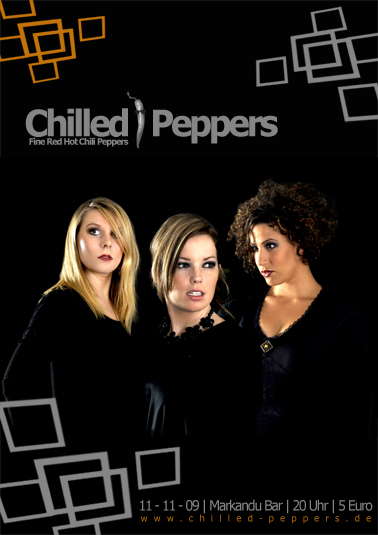 Andere Bands wären froh auch nur eine Sängerin mit so einem Format zu haben - die Chilled Peppers haben gleich DREI (Amanda Porter, Anna Friebe, Lissy Ishag). Auf der Bühne werden die drei außergewöhnlich stimmgewaltigen Mädels von fünf Jungs (Andi Seifert, Sven Hemsley Gitarre; Karsten Prior, Udo Liebert Percussion; Michael Driesner Bass) unterstützt. Live, akustisch, groovig und alles ohne Effekte oder Retusche: so werden die legendären Funk-Rocker Red Hot Chili Peppers erfrischend neu interpretiert, ob man die Songs der Kalifornier nun mag oder nicht. „Ihr seid echt super! :)“ und „the peppers would be proud! beautiful!!!“ sind nur einige Stimmen eines begeisterten Publikums.